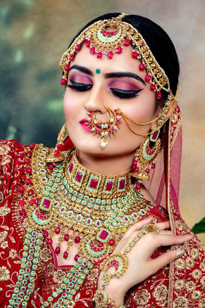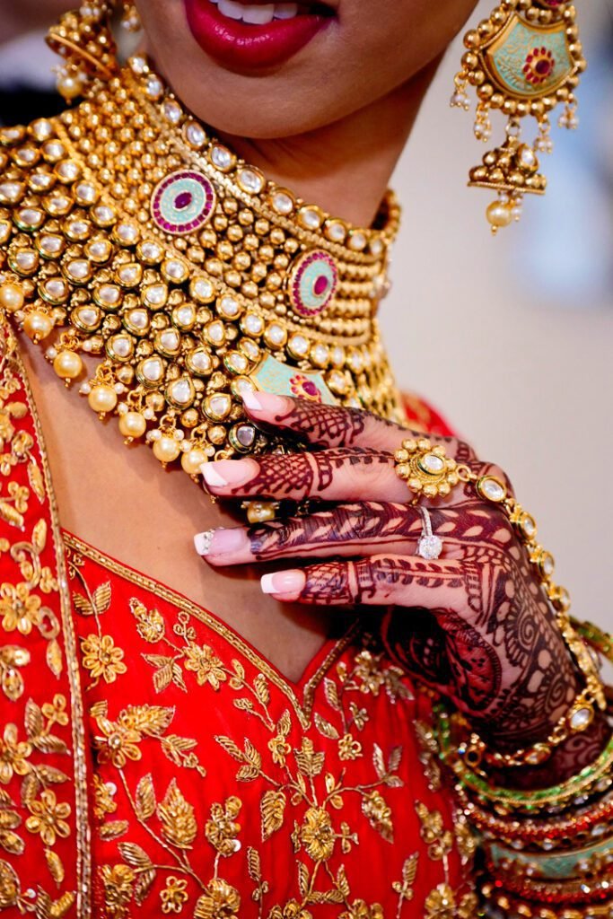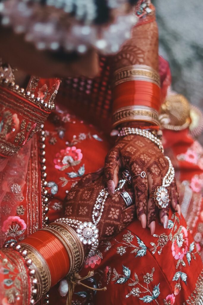 Bangles and Bracelets (Kangan, Chooda): Traditional bangles made of gold, glass, or precious metals are worn. Brides in some regions also wear a set of red and ivory bangles called ‘chooda.’