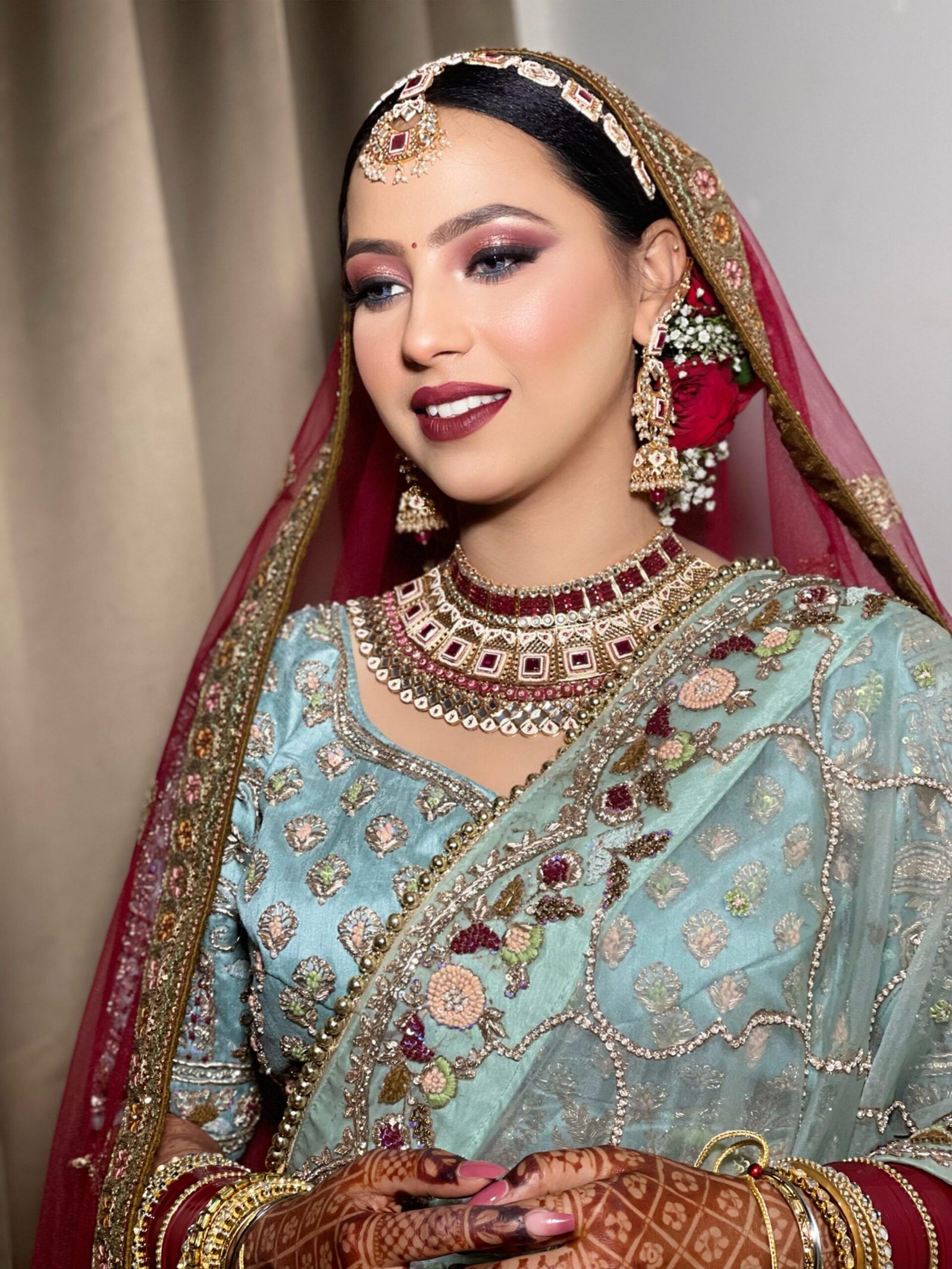 Various independent reviews, bloggers, photographic studios, journals, and other publications have consistently rated her as a top makeup artist in Jalandhar as well as do freelancer makeup in Ludhiana, Amritsar, Chandigarh, and Punjab including north India. Because her team puts up a tiny studio every time they freelance, she is also a top freelance makeup artist.