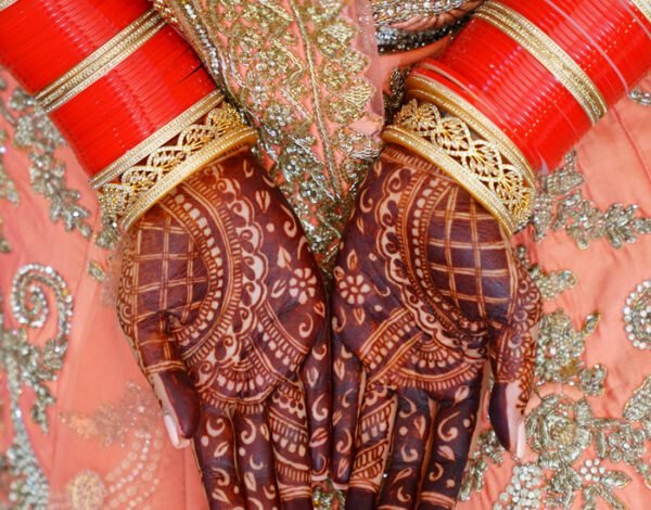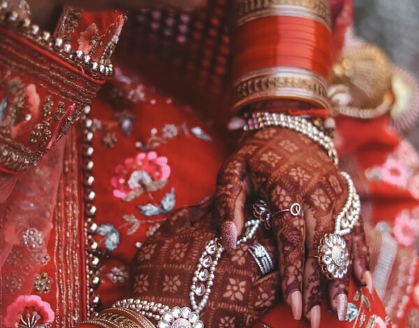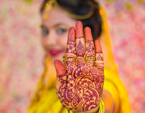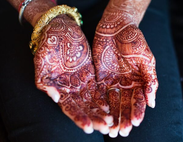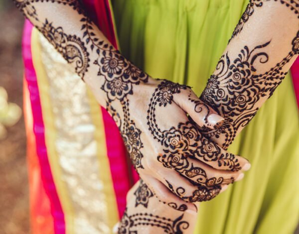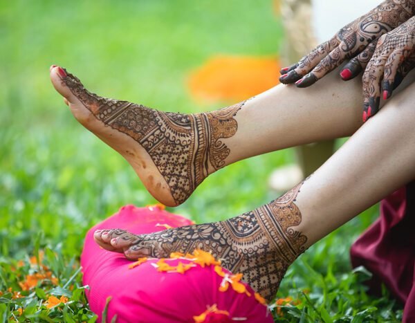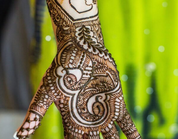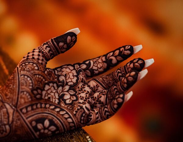 Bridal Mehndi: Bridal mehndi is typically more elaborate, covering the hands and feet with intricate designs that often incorporate symbols representing love, prosperity, and the bond between the couple. The bride’s initials or the groom’s name might be hidden within the patterns as a playful tradition.