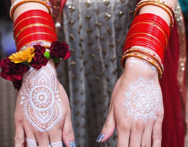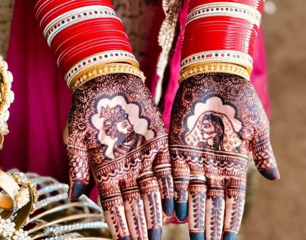 Modern Mehndi: Contemporary designs might include geometric patterns, abstract motifs, or incorporate elements like glitter, rhinestones, or even incorporate portraits or personalized elements.