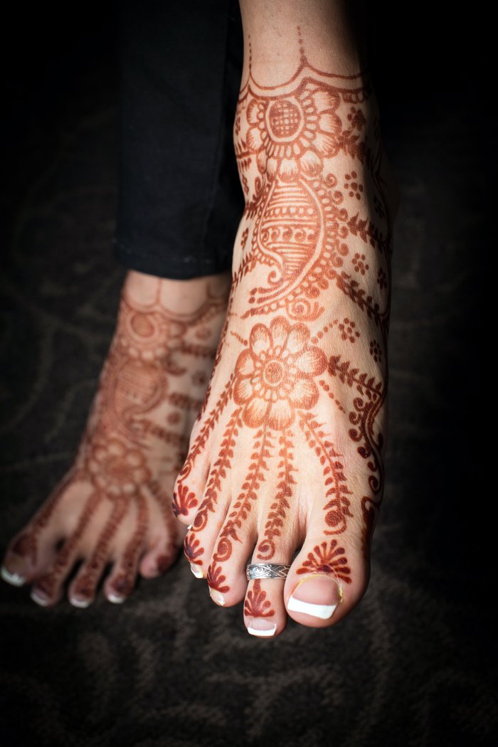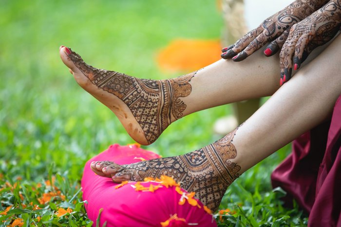 Traditional Indian Designs: These often feature intricate patterns, paisleys, flowers, peacocks, and mandalas. They cover the hands and feet with elaborate designs, symbolizing joy, beauty, and spiritual awakening.