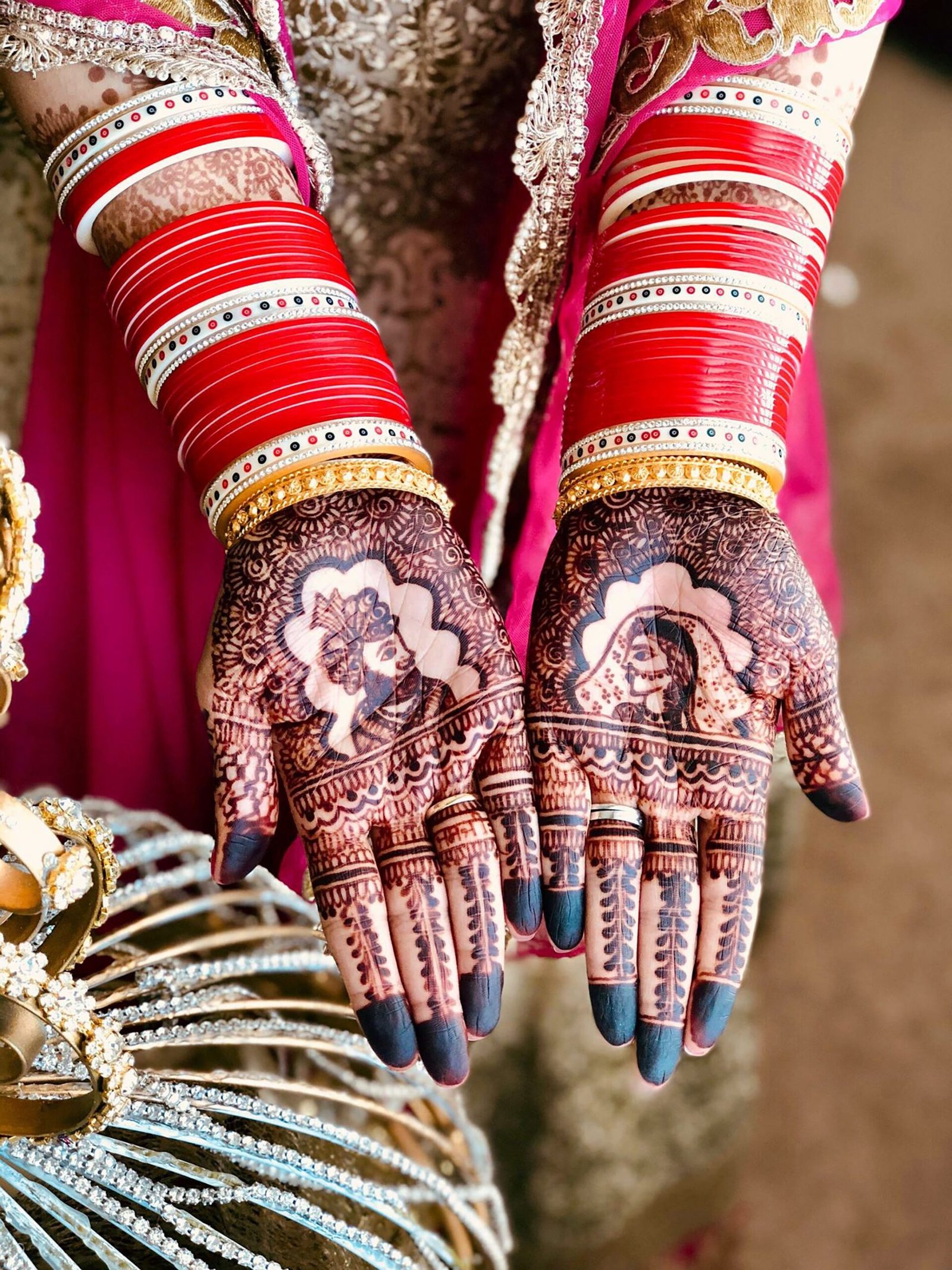 Modern Mehndi: Contemporary designs might include geometric patterns, abstract motifs, or incorporate elements like glitter, rhinestones, or even incorporate portraits or personalized elements.